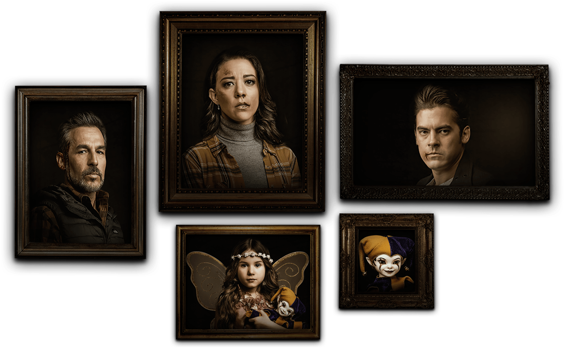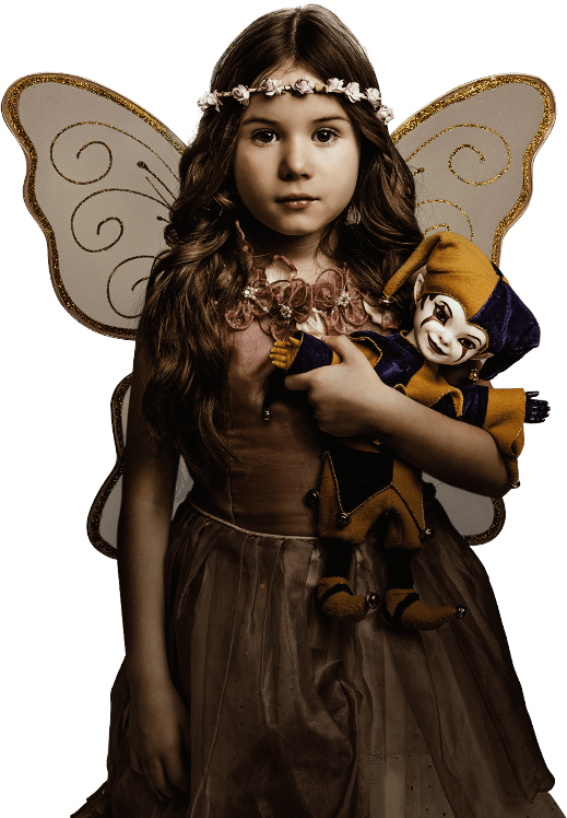 Era el Bufón más gracioso del reino y las carcajadas lo seguían por todas partes. Pero un día la mala fortuna cayó sobre él y no pudo hacer reír al rey. Intentó sus mejores trucos, pero todo fue inútil. El rey estaba furioso, lanzaba espuma por la boca, maldecía, se revolcaba. Ordenó a sus guardias que lo colgaran de la torre más alta del castillo. Allá quedó su cuerpo, a merced del viento y los buitres, pudriéndose poco a poco. Nadie tuvo compasión. Desde entonces quedó atrapado en un cuerpo de trapo. Ahora solo puede vivir en el escenario de su teatro mágico, acompañado de almas atormentadas y desafortunadas como la suya.