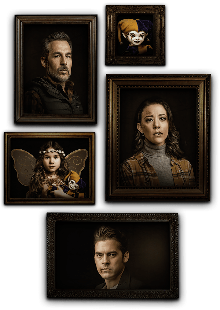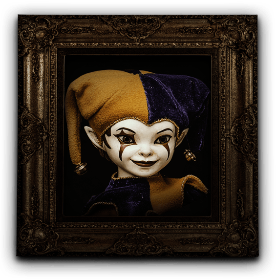 Era el Bufón más gracioso del reino y las carcajadas lo seguían por todas partes. Pero un día la mala fortuna cayó sobre él y no pudo hacer reír al rey. Intentó sus mejores trucos, pero todo fue inútil. El rey estaba furioso, lanzaba espuma por la boca, maldecía, se revolcaba. Ordenó a sus guardias que lo colgaran de la torre más alta del castillo. Allá quedó su cuerpo, a merced del viento y los buitres, pudriéndose poco a poco. Nadie tuvo compasión. Desde entonces quedó atrapado en un cuerpo de trapo. Ahora solo puede vivir en el escenario de su teatro mágico, acompañado de almas atormentadas y desafortunadas como la suya.
